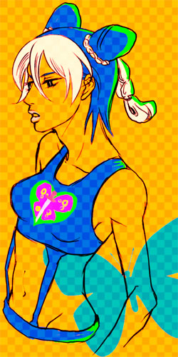 課題製作しながら「夢、希望、ネアポリスにて」と6部「魂のルフラン」を延々リピートで聴きまくってたら、泣けてきて泣けてきて思わず徐倫姉さん描いてた(オーイ!)